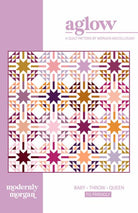 Aglow is a whimsical star quilt that radiates happiness! It?s fat quarter friendly and a great way to use up FQ bundles that you have stashed away in your fabric collection! Pattern comes in Baby, Throw and Queen sizes and is perfect for advanced beginners and up.